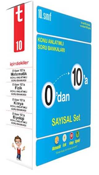 Seni uçuracak yepyeni bir setle karşındayız. Bu setle 0’dan 10’a rekor hızla çıkacak, 10. sınıfta sayısal derslerde bilmen gereken her şeyi en renkli şekilde öğreneceksin. Üstelik sınavlarda bir soru canavarına dönüşecek kadar soru pratiği de yapacaksın. Bütün bunlar 0’dan 10 Konu Anlatımlı Soru Bankası Sayısal setiyle olacak. Peki bu sette hangi kitaplar var?