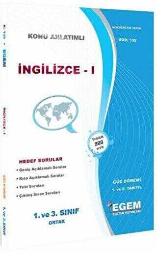 1. Sınıf 1. Yarıyıl İngilizce 1 Konu Anlatımlı Soru Bankası - Kod 158 Egem Eğitim Yayınları