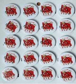 Gelince Haber Ver23 Nisan Ulusal Egemenlik ve Çocuk Bayramı’nın coşkusunu yansıtan bu özel tasarım rozet, beyaz zemin üzerinde yer alan büyük Türk bayrağı ve bayramı kutlayan çocuk figürleriyle dikkat çeker.