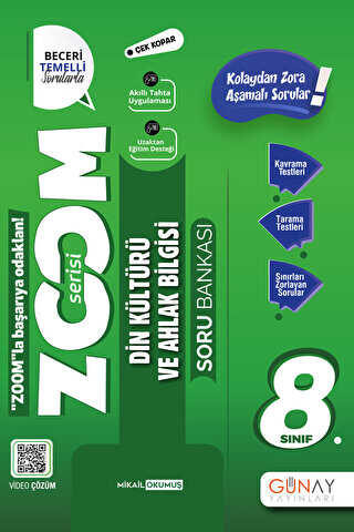 Günay Yayınları 8. Sınıf Din Kültürü ve Ahlak Bilgisi Zoom Soru Bankası Ürün Açıklaması