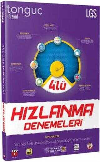 Tamamı yeni tip yatay sorulardan oluşan 4’lü Hızlanma Denemeleri’nde başlıca; Türkçe dersinde yeni nesil görselli, infografik, bilgiyi verip ölçmeye dayalı olan sözel mantık soruları, Matematik dersinde formüllerin öncül olarak verildiği günlük yaşam durumunu içeren sayısal analiz soruları, Fen Bilimleri dersinde deney ağırlıklı, bilgiyi yorumlama gerektiren, tablo ve grafik okuma içeren sorular bulunuyor. PISA ve TIMSS sınavlarına en uygun soru tipleriyle hazırlanan çalışma kitabı seni yeni sınav sistemine hazırlayacak ve içeriğindeki 8. sınıfın tüm konularını içeren optik formlu denemelerle gerçek bir sınav provası yapmanı sağlayacak.