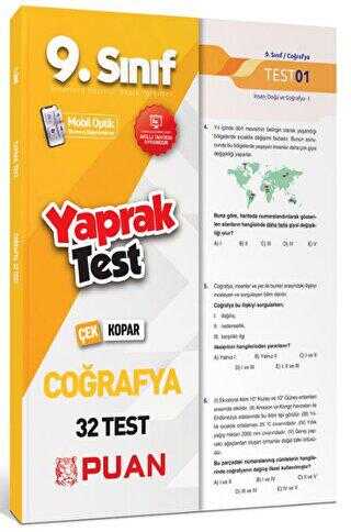Puan Yayınları 9. Sınıf Coğrafya Yaprak Test Ürün Açıklaması