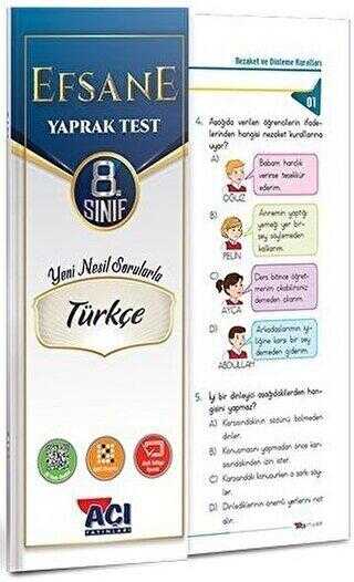 Açı Yayınları 8. Sınıf Tükçe Çek Kopar Yaprak Test Ürün Açıklaması