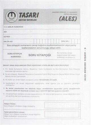 Tasarı Eğitim Yayınları ALES TG Soru Kitapçığı Deneme Sınavı 6 Ürün Açıklaması