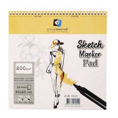 Alex Schoeller Sketch Marker Pad Eskiz Defteri 200gr 20x20cm 40yp Spiralli