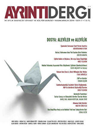 Gelince Haber VerAyrıntı Dergi olarak bir yılımızı geride bıraktık. Uzun haziran olarak tanımlayabileceğimiz Gezi ayaklanmasının hemen sonrasında çıkardığımız ilk sayıdan bugüne memleketin ve dünyanın politik ikliminden, insanımızın duygu durumuna hiçbir şey bir dengede kalmadı. Denge ve süreklilik gösteren tek şey, devletin bütün kurumlarını parti organıyla bütünleştirmeye çalışan, kendine karşı gelişecek her muhalefeti kriminalize eden *Yeni Türkiye*nin inşası oldu. Muhafazakâr demokratlıktan, sünni otoriterliğe, oradan da tek adam ve tek parti rejimine doğru adım adım inşa edilen *Yeni Türkiye*nin fotoğrafı bir kara ütopya filminin afişi gibi: İşçileri yiyerek büyüyen bir kapitalizm –ya da inşaatçılık–, zorunlu matematik, fizik, kimya derslerinin tartışma konusu olduğu eğitim anlayışı, barış demeye dili varmayan, çözüm süreci derken de her kelimesinden kan damlayan bir savaş çığırtkanlığı... Ayrıntı Dergi’nin 7. Sayı’sı bu fotoğrafın en karardığı noktada taleplerini yükselten, sesi bu karabasanca boğulan Alevileri odağa alıyor. Hükümetin Alevilere karşı aldığı cepheyi anlamaya ve anlatmaya çalışıyor.