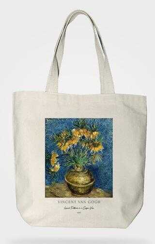 Bez Çanta Gabardin Kumaş %100 Pamuk Van Gogh Tablosu - Bakır Vazo