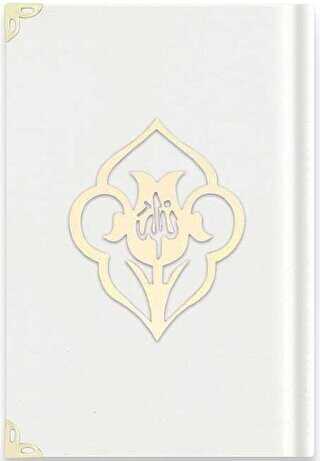 Büyük Cep Boy Kadife Kuran-ı Kerim (Beyaz, Güllü, Mühürlü) - A3 Beyaz