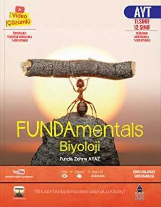 Şimdi de bu kitapla 24 yıllık tecrübe ve bilgi birikimimi sizlere aktarmaya çalışıyorum. Kitabımı, yeni Biyoloji Öğretim Programına, ÖSYM‘nin yeni sınav sistemine ve bu sınav sisteminde farklılaşan soru tiplerine uygun olarak hazırladım. Kitabımdaki her konunun anlatım videosunu ve o konuyla ilgili soru çözüm videolarını “FUNDAmentals Biyoloji” Youtube kanalımda bulabilirsiniz. Evet benim derslerim herkese ücretsiz. Size düşen ise sadece hafızaya atmak ve beni başarılarınızdan haberdar etmek...