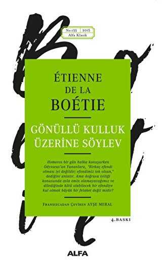 On altıncı yüzyılda yazılan, devlet egemenliği ve iktidarın meşruluğunu irdeleyen bu eser, on dokuzuncu yüzyıl toplumsal hareketlerine yön vermekle kalmayıp Tolstoy gibi dönemin anarşist düşünürlerini de etkiledi. La Boétie`nin kısacık hayatına sığan bu kısa metinde, iktidar ilişkilerinin nasıl sürdürüldüğünü ve bu tahakküm karşısında direniş ve sivil itaatsizlik teorilerinin nasıl hayata geçirilebileceğini görüyoruz.