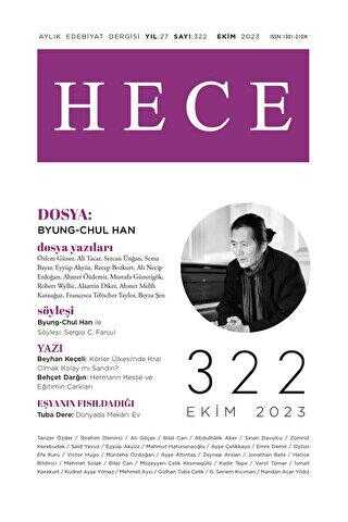 Hece 322’nin dosyası “Byung-Chul Han” başlığını taşıyor. Ülkemizde son yıllarda ilgiyle takip edilen Han’ın ele alındığı dosyanın editörü Özlem Güner. Güner’in sunuş yazısını Han’la yapılmış bir söyleşi takip ediyor: Sergio C. Fanjul’un gerçekleştirdiği söyleşinin çevirisi Ali Tacar tarafından yapıldı. Dosyanın diğer yazarları ve başlıkları şöyle: