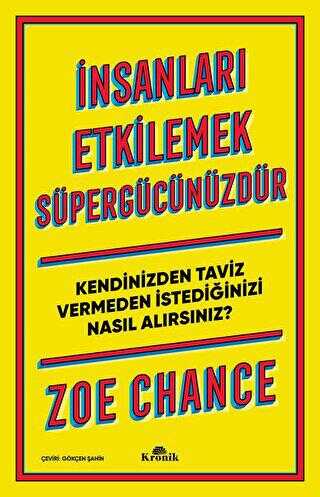 Aslında daha doğduğunuz anda insanlar üzerinde gayet etki bırakan biri olarak dünyaya gelirsiniz. Ancak daha sonra bu gücü bastırmayı, kurallara uymayı, sıranızı beklemeyi, sorun çıkarmamayı size öğretirler. Etrafınıza boyun eğersiniz. Yale Üniversitesi’nden ödüllü profesör Zoe Chance büyük fikirleri hayata geçiren bu süpergücünüzü tekrar nasıl keşfedeceğinizi gösteriyor!