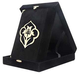 Kadife Kutulu Kur`an-ı Kerim Orta Boy, Güllü, Siyah