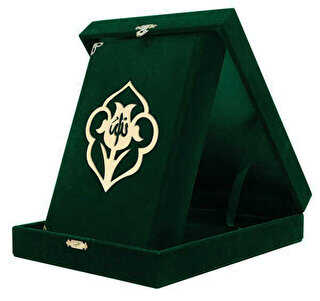 Kadife Kutulu Kur`an-ı Kerim Orta Boy, Güllü, Yeşil