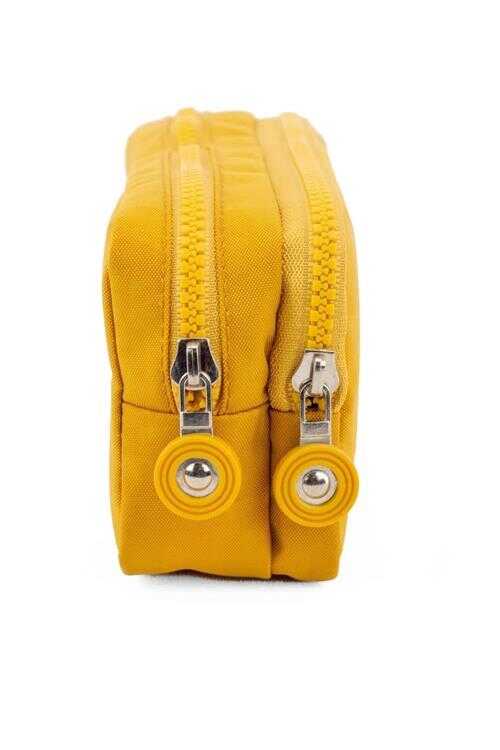 Kaff 01105 Krinkıl Kumaş Yıkanabilir Çift Bölmeli Gözlü Kalemlik Kalem Kutusu - Hardal