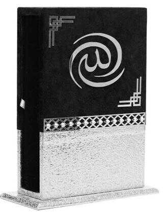 Meva Serisi Ahşap Muhafazalı Metalize Kaplamalı Kutu + Orta Boy Metalize Kaplamalı Arapça Kuran + Taşıma Çantası Hediye Seti Gümüş (90345)