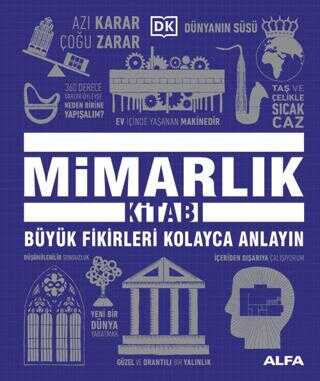 Sade bir dille yazılan Mimarlık Kitabı, teknik jargonu aşan kısa, özlü açıklamalarla, temel özellikleri açıklayan erişilebilir diyagramlarla, mimariyi unutulmaz kılan klasik alıntılarla ve binalar hakkındaki fikirlerimizle oynayan esprili resimlerle doludur.