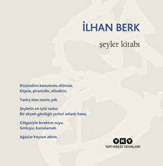 Gelince Haber VerKendini tüm şairlerle "akraba" sayan yücegönüllü bir şairin, kendini, hayatın görünen-görünmeyen tüm nesneleriyle eşitleyen kardeşçe yücegönüllülüğünün sessiz şarkısı: Düşündün konumunu ölümün. Küpün, piramidin, silindirin. Yanlış olan nesne yok. Şeylerin en iyisi sudur. Bir akşam gördüğü yerleri anlattı bana. Gölgesiyle bıraktım suyu. Sonluyu, kurcalamalı. Ağaçlar koysun adımı.