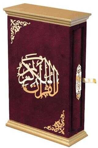 Taç Serisi Kadife Kaplamalı Ahşap Muhafazalı Kutu + Orta Boy Arapça Kadife Kuran + Taşıma Çantası Hediye Seti Bordo (90244)