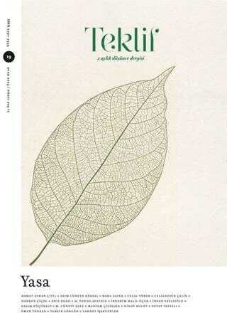 Teklif, her seferinde oldugˆu gibi klasik hu¨kmu¨ndeki kitapların tanıtımları, muhtelif alıntılar ve uzmanlarca kaleme alınan makalelerle gec¸mis¸ten gu¨nu¨mu¨ze yasa temasını ele alan farklı yaklas¸ımlara bu¨tu¨nlu¨klu¨ bir bakıs¸ getirmeye c¸alıs¸ıyor.