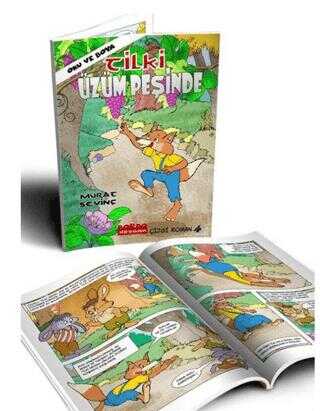 Oku ve Boya Renkli Çizgi Roman Tilki Üzüm PeşindeYazın en sıcak günlerinden biriymiş, nasıl olmuşsa o gün kurnaz tilki aç kalmış.