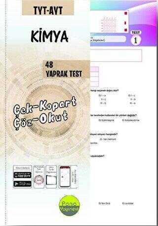Pano Yayınevi TYT AYT Kimya Yaprak Testleri Çek Kopart 48 Adet Ürün Açıklaması