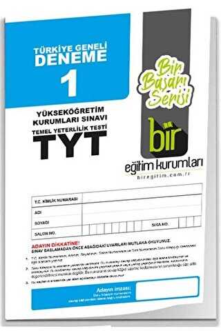 Bir Eğitim Kurumları TYT Türkiye Geneli Deneme 1 Ürün Açıklaması