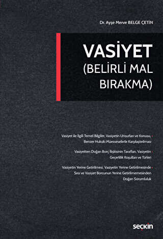 Gelince Haber VerMirasbırakanın, vasiyetname ya da miras sözleşmesi yoluyla bir kişiye, mirasçı atama anlamına gelmeksizin, bir malvarlığı menfaatini kazandırma amacıyla tasarrufta bulunması, vasiyet olarak adlandırılmaktadır. Maddi anlamda ölüme bağlı bir tasarruf olan vasiyet, mirasın açıldığı anda vasiyet alacaklısına bir alacak hakkı kazandırmakta ve bu bağlamda vasiyet alacaklısı ile vasiyet yükümlüsü arasında bir borç ilişkisi kurmaktadır. Vasiyete konu malvarlığı menfaatinin kazandırılması, vasiyet alacaklısı ile vasiyet yükümlüsü arasında yapılacak, o vasiyet konusuna özgü sağlararası bir hukuki işlemle mümkün olmaktadır. Çalışmanın amacı, vasiyet tasarrufunun her yönüyle incelenmesi ve bu bağlamda, teorik tartışmalara ilişkin değerlendirmelerde bulunulması ile uygulamada karşılaşılabilecek sorunlara çözüm önerileri getirilmesidir.