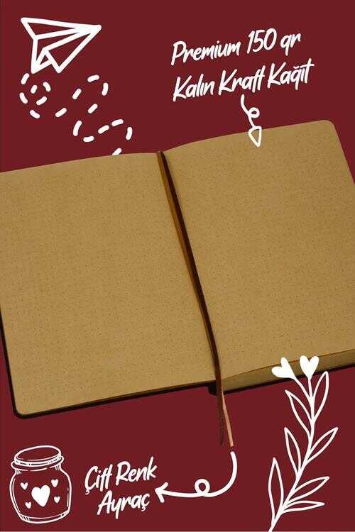Victoria Journals 124-1633 Bujo Kraft Defter Süet A5 96 yaprak 150 gr Kraft kağıt Noktalı Bordo
